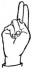 На ћирилици написано ПАУН КАРАВЕСОВИЋ састоји се из 15 слова [?]. Исписано ћириличном једноручном азбуком за глувонеме: